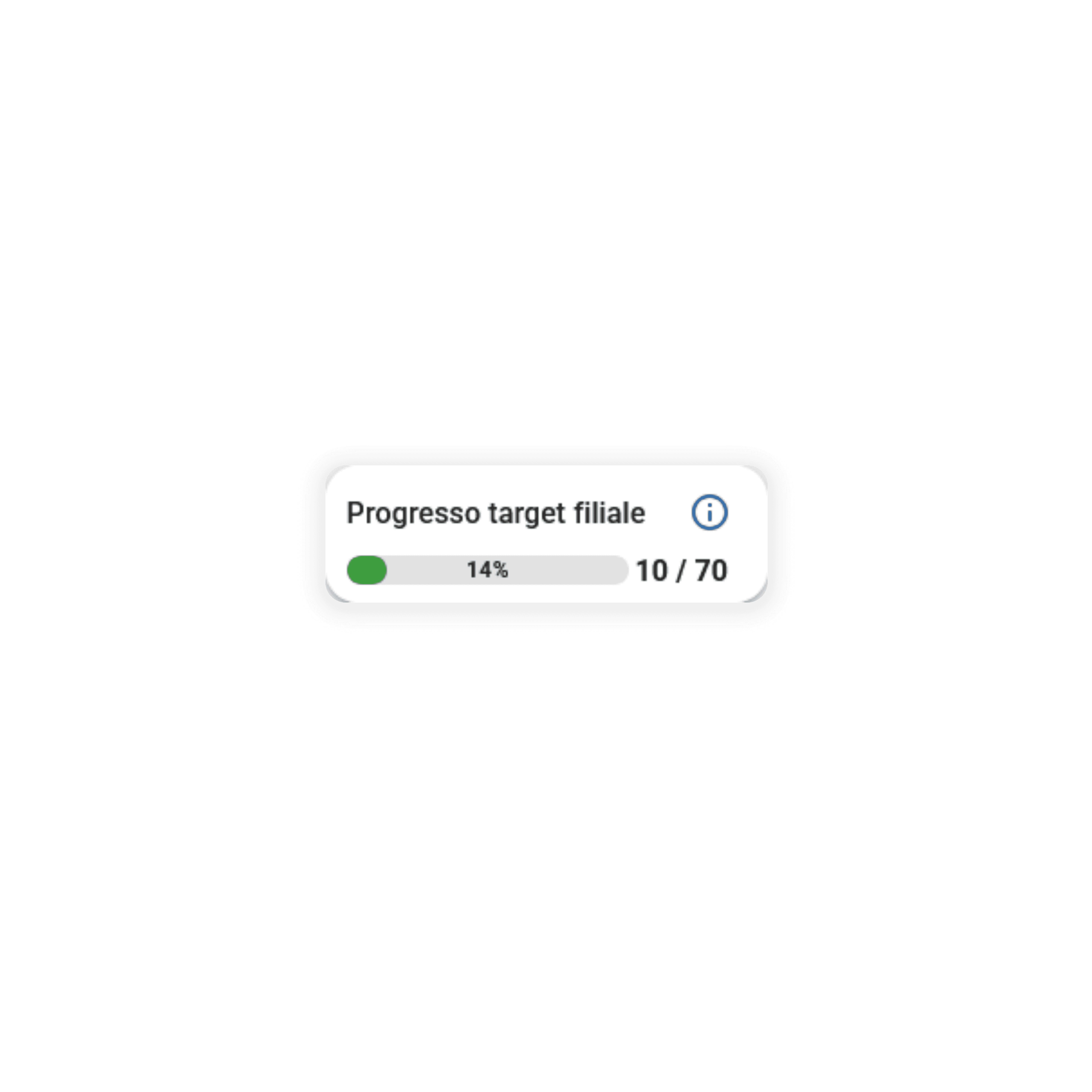 Mantieni la squadra sempre focalizzata sui traguardi grazie a indicatori in primo piano. Con il Target Filiale, hai a disposizione una barra visiva che monitora costantemente l'andamento del lavoro, mostrando in tempo reale le chiamate gestite e quanto manca per raggiungere il target della tua agenzia.